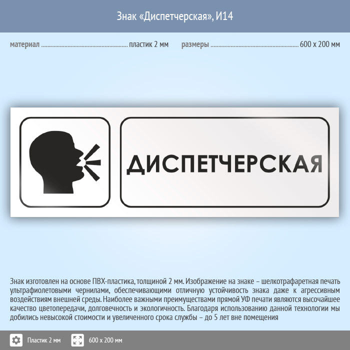 Знак «Диспетчерская», И14 (пластик, 600х200 мм) в Магнитогорске купить