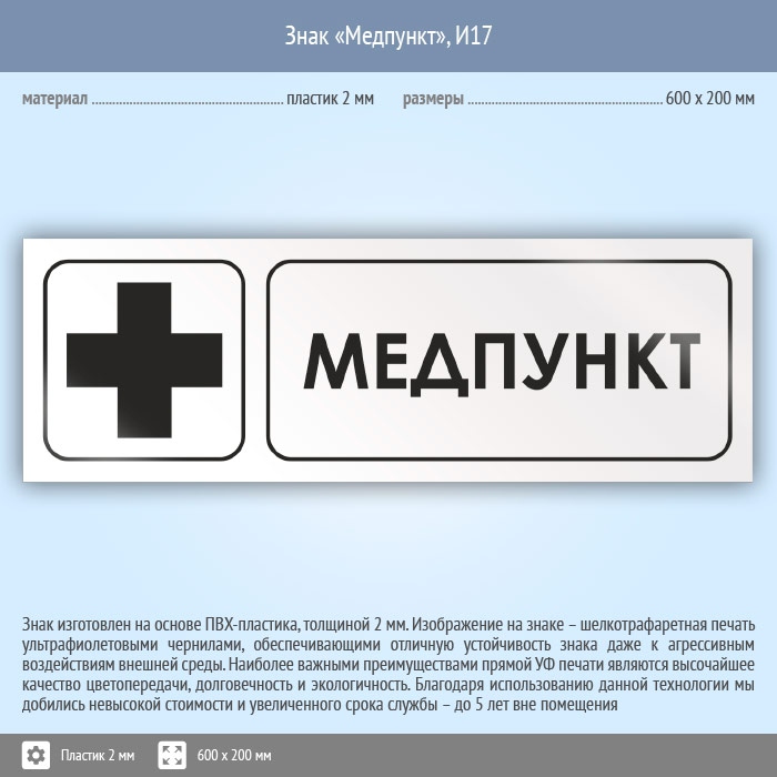Знак «Медпункт», И17 (пластик, 600х200 мм) в Магнитогорске купить