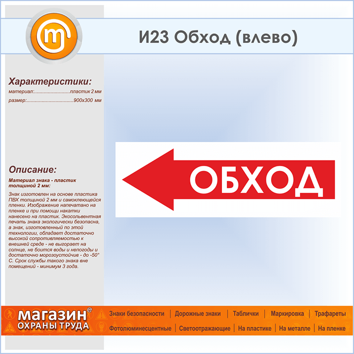 Знак «Обход (влево)», И23 (пластик, 900х300 мм) в Магнитогорске купить