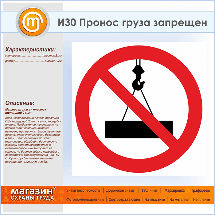 Знак «Пронос груза запрещен», И30 (пластик, 500х500 мм) в Магнитогорске купить