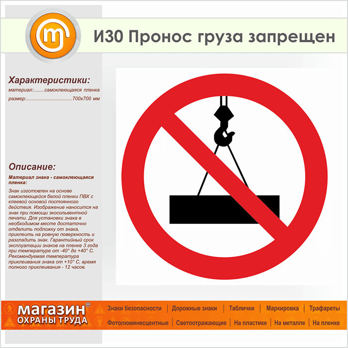 Знак «Пронос груза запрещен», И30 (пленка, 700х700 мм) в Магнитогорске купить