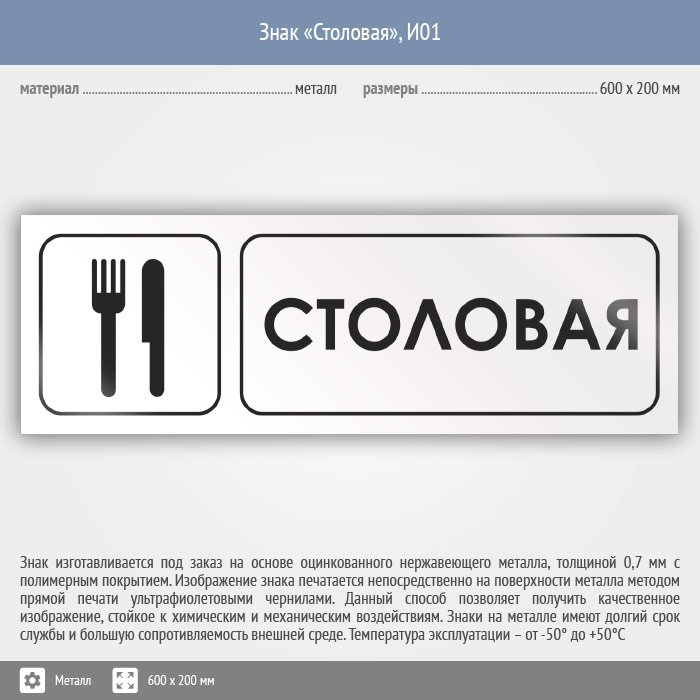 Знак «Столовая», И01 (металл, 600х200 мм) в Магнитогорске купить