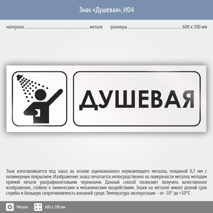 Знак «Душевая», И04 (металл, 600х200 мм) в Магнитогорске купить