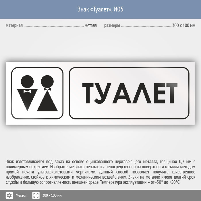 Знак «Туалет», И05 (металл, 300х100 мм) в Магнитогорске купить