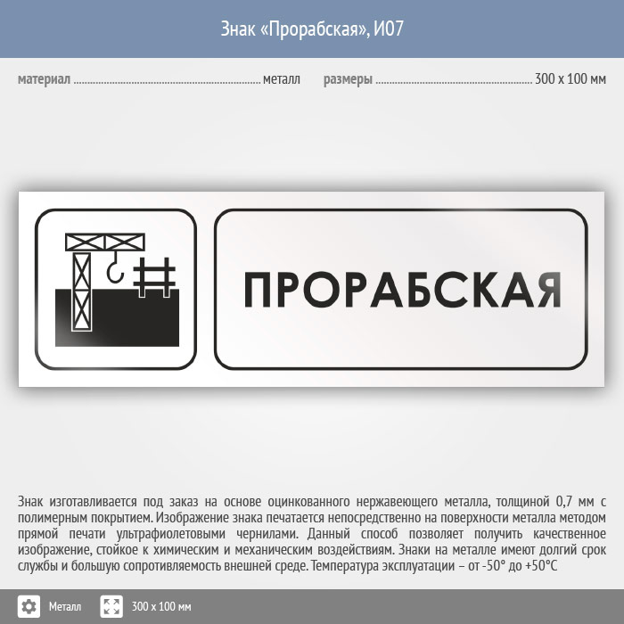 Знак «Прорабская», И07 (металл, 300х100 мм) в Магнитогорске купить