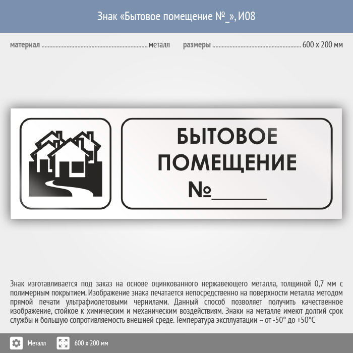 Знак «Бытовое помещение №_», И08 (металл, 600х200 мм) в Магнитогорске купить
