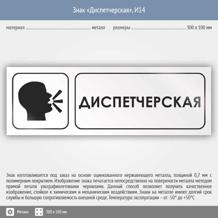 Знак «Диспетчерская», И14 (металл, 300х100 мм) в Магнитогорске купить