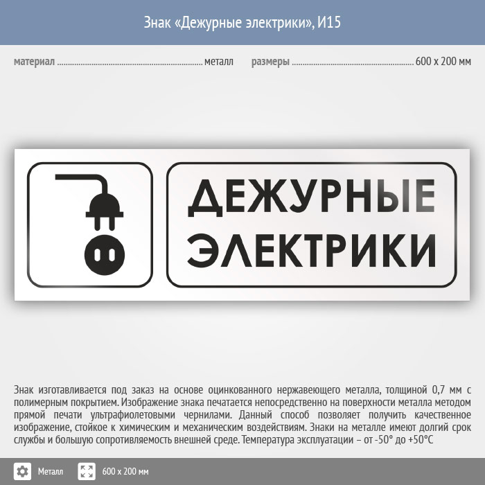 Знак «Дежурные электрики», И15 (металл, 600х200 мм) в Магнитогорске купить
