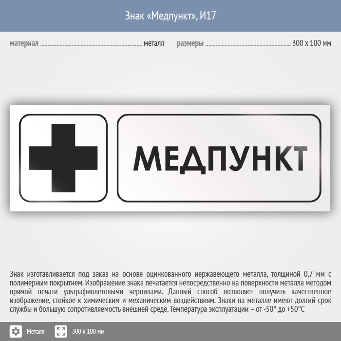Знак «Медпункт», И17 (металл, 300х100 мм) в Магнитогорске купить