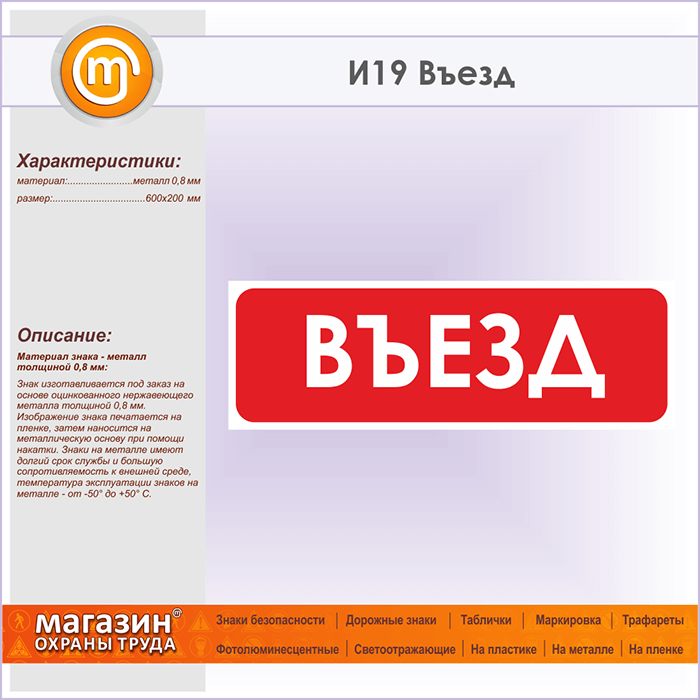 Знак «Въезд», И19 (металл, 600х200 мм) в Магнитогорске купить