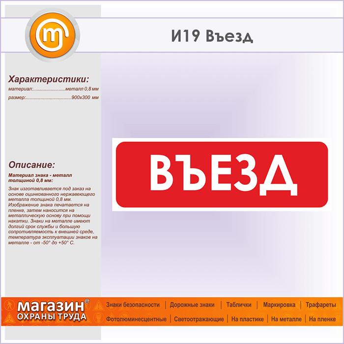 Знак «Въезд», И19 (металл, 900х300 мм) в Магнитогорске купить
