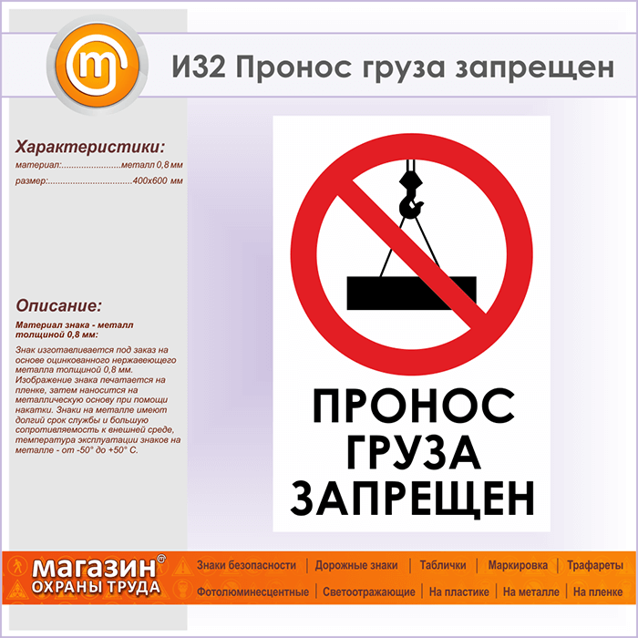 Знак «Пронос груза запрещен», И32 (металл, 400х600 мм) в Магнитогорске купить