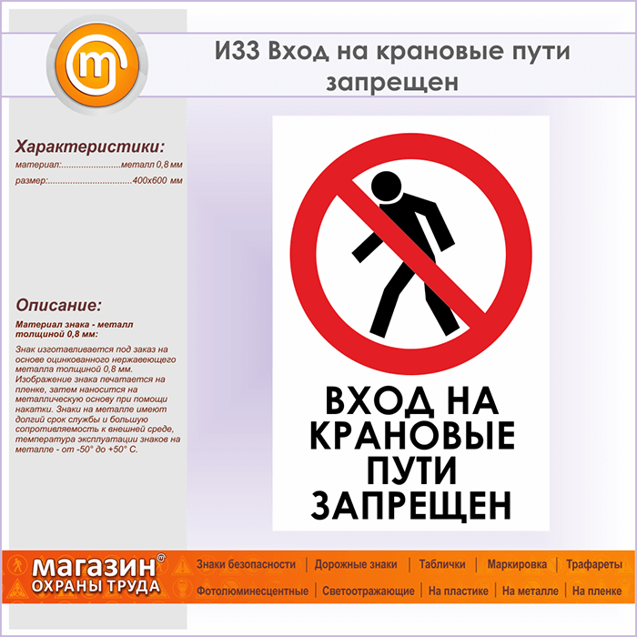 Знак «Вход на крановые пути запрещен», И33 (металл, 400х600 мм) в Магнитогорске купить