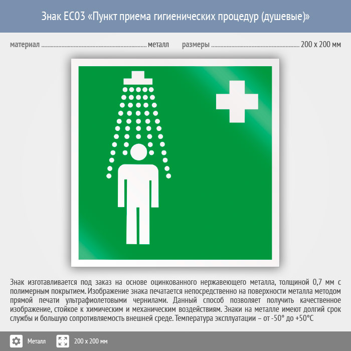 Знак EC03 «Пункт приема гигиенических процедур (душевые)» (металл, 200х200 мм) в Магнитогорске купить