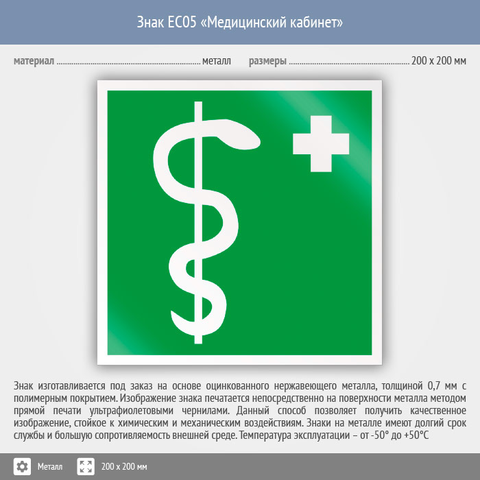 Знак EC05 «Медицинский кабинет» (металл, 200х200 мм) в Магнитогорске купить