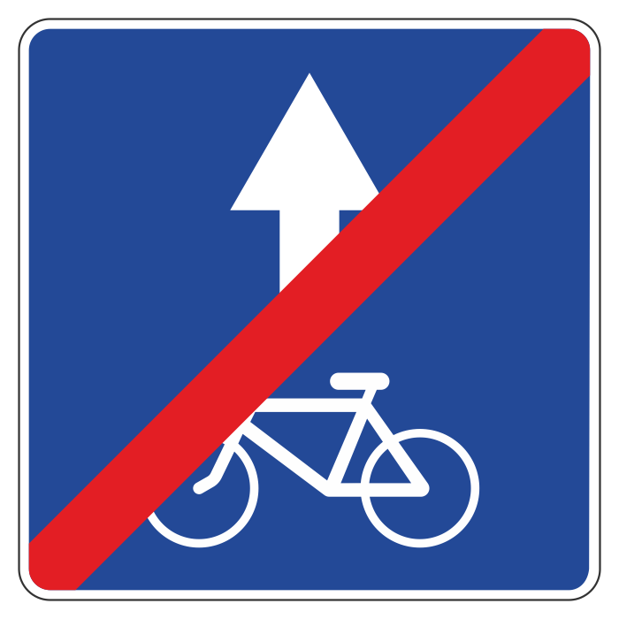 Дорожный знак 5.14.3 «Конец полосы для велосипедистов» (металл 0,8 мм, III типоразмер: сторона 900 мм, С/О пленка: тип А коммерческая) в Магнитогорске купить