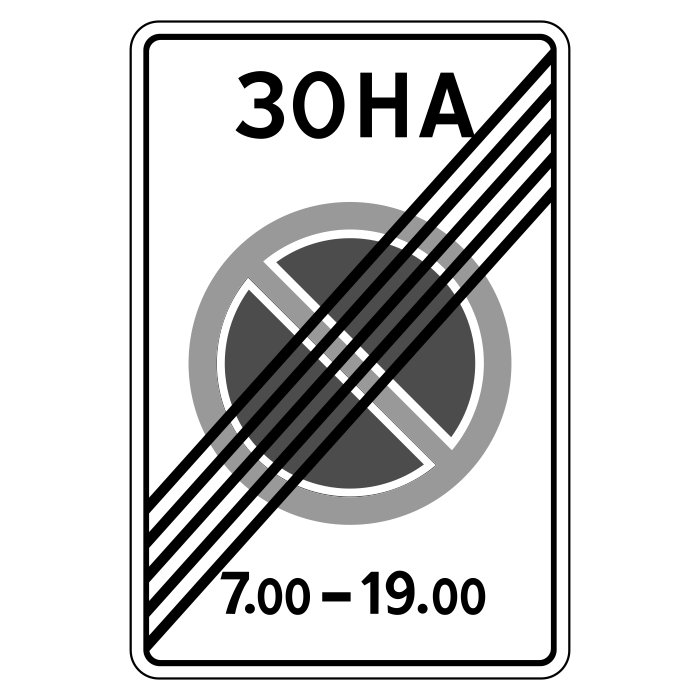 Дорожный знак 5.28 «Конец зоны с ограничениями стоянки» (металл 0,8 мм, I типоразмер: 900х600 мм, С/О пленка: тип Б высокоинтенсивная) в Магнитогорске купить