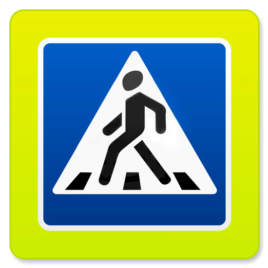 Дорожный знак 5.19.1д «Пешеходный переход» флуоресцентный (металл 0,8 мм, II типоразмер + кант: сторона 900 мм, С/О пленка: тип В алмазная) в Магнитогорске купить