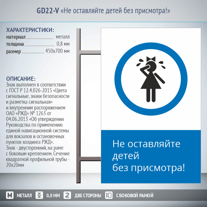 Знак «Не оставляйте детей без присмотра!», GD22-V (двусторонний вертикальный, 450х700 мм, металл, на раме с боковым креплением) в Магнитогорске купить