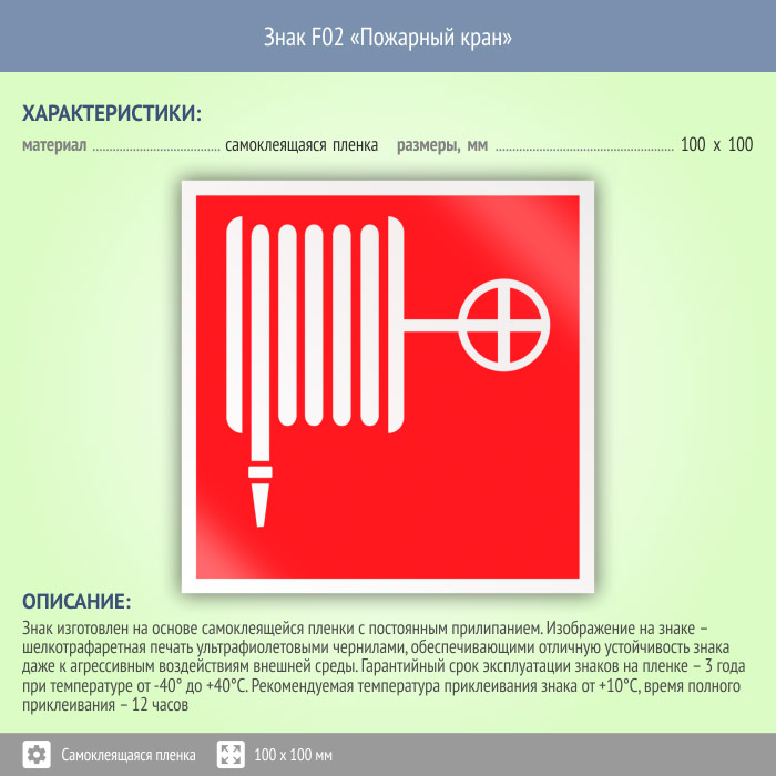 Знак F02 «Пожарный кран» (пленка, 100х100 мм) в Магнитогорске купить