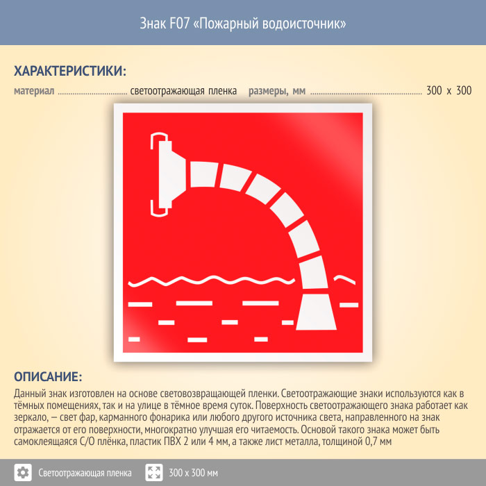 Знак F07 «Пожарный водоисточник» (светоотражающая пленка, 300х300 мм) в Магнитогорске купить