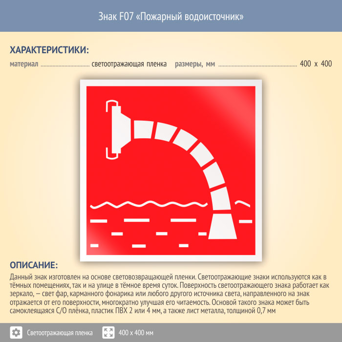 Знак F07 «Пожарный водоисточник» (светоотражающая пленка, 400х400 мм) в Магнитогорске купить