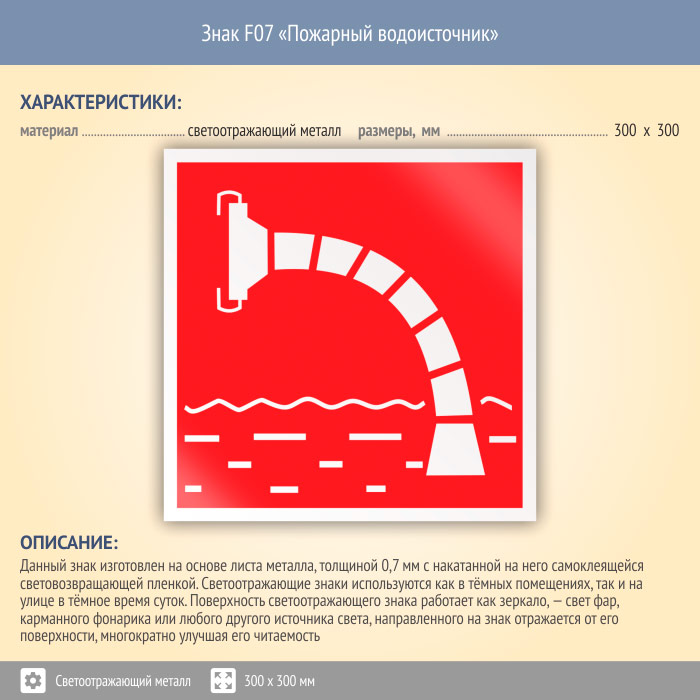 Знак F07 «Пожарный водоисточник» (светоотражающий металл, 300х300 мм) в Магнитогорске купить