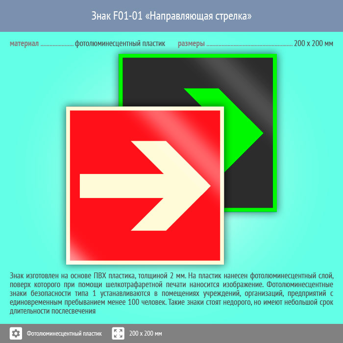 Знак F01-01 «Направляющая стрелка» (фотолюминесцентный пластик, 200х200 мм) в Магнитогорске купить