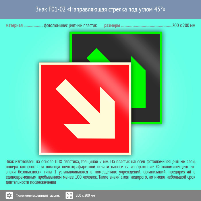 Знак F01-02 «Направляющая стрелка под углом 45°» (фотолюминесцентный пластик, 200х200 мм) в Магнитогорске купить