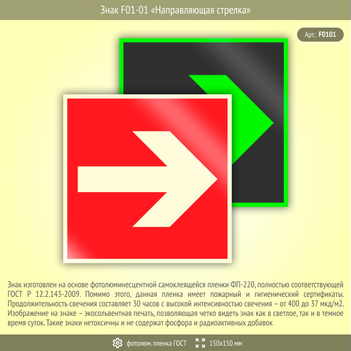 Знак F01-01 «Направляющая стрелка» (фотолюминесцентная пленка ГОСТ 34428-2018, 150х150 мм) в Магнитогорске купить