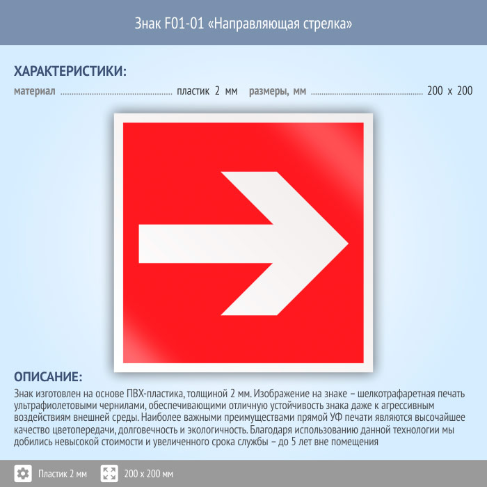 Знак F01-01 «Направляющая стрелка» (пластик, 200х200 мм) в Магнитогорске купить