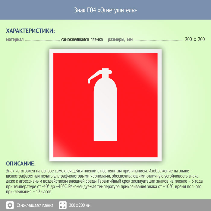 Знак F04 «Огнетушитель» (пленка, 200х200 мм) в Магнитогорске купить