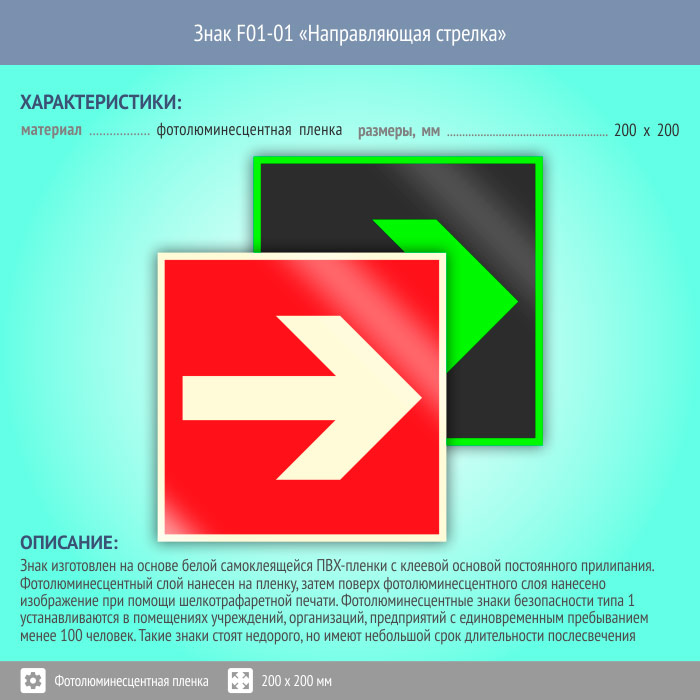 Знак F01-01 «Направляющая стрелка» (фотолюминесцентная пленка, 200х200 мм) в Магнитогорске купить