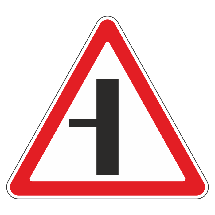 Дорожный знак 2.3.3 «Примыкание второстепенной дороги слева» (металл 0,8 мм, III типоразмер: сторона 1200 мм, С/О пленка: тип А коммерческая) в Магнитогорске купить