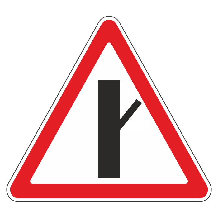 Дорожный знак 2.3.4 «Примыкание второстепенной дороги справа» (металл 0,8 мм, II типоразмер: сторона 900 мм, С/О пленка: тип В алмазная) в Магнитогорске купить