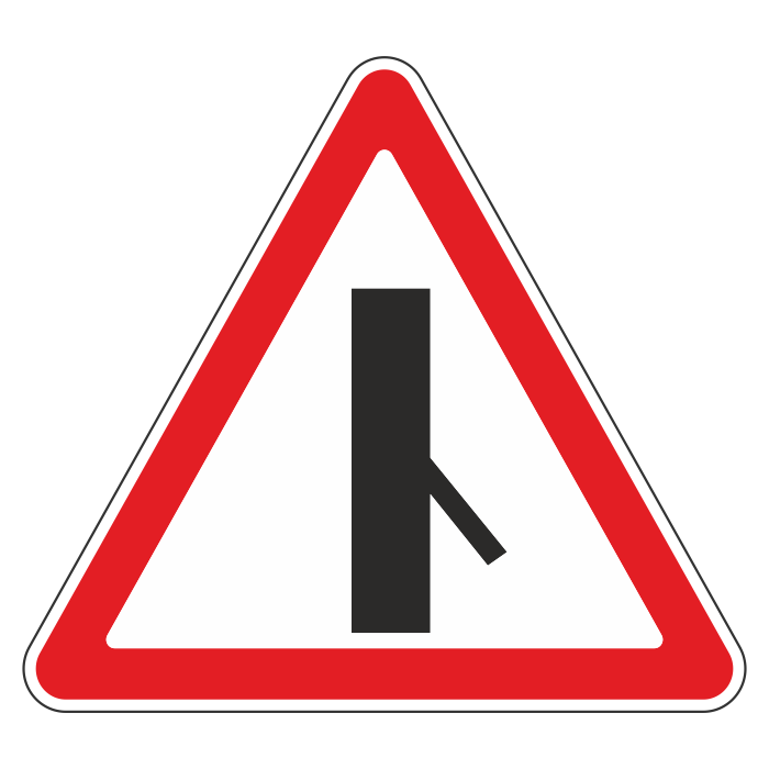 Дорожный знак 2.3.6 «Примыкание второстепенной дороги справа» (металл 0,8 мм, II типоразмер: сторона 900 мм, С/О пленка: тип А инженерная) в Магнитогорске купить