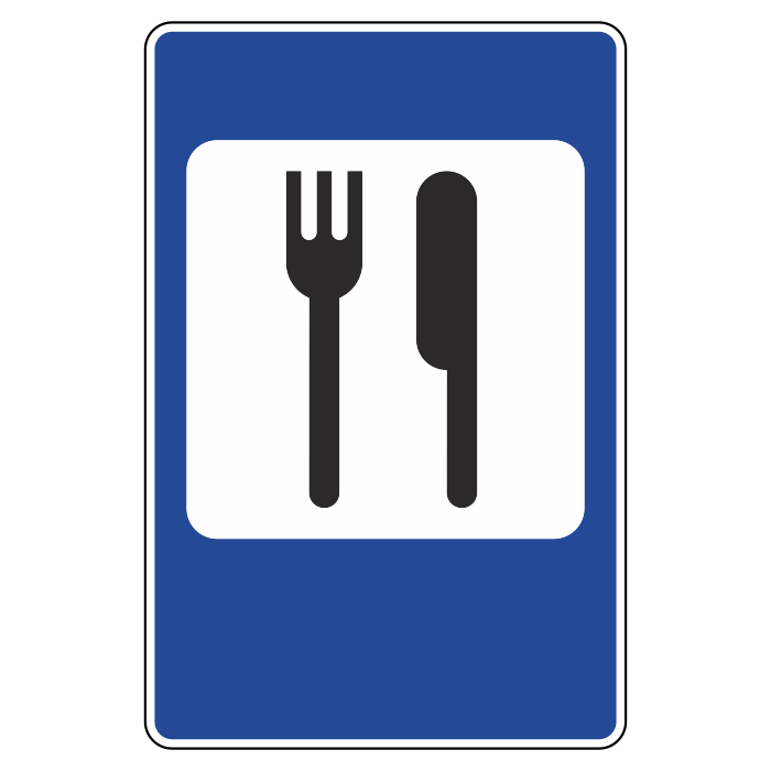 Дорожный знак 7.7 «Пункт питания» (металл 0,8 мм, II типоразмер: 1050х700 мм, С/О пленка: тип А инженерная) в Магнитогорске купить