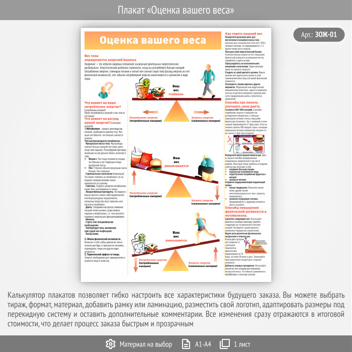 Плакат «Оценка вашего веса» (ЗОЖ-01, 1 лист) в Магнитогорске купить