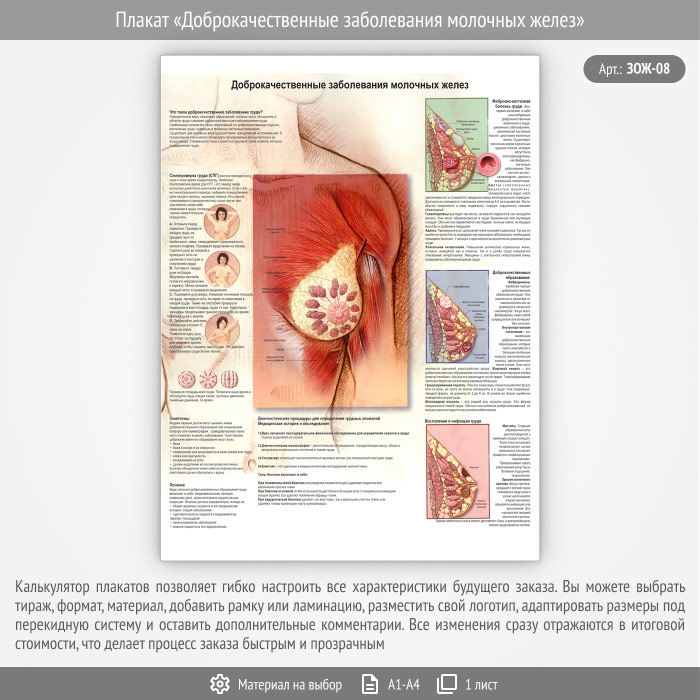 Плакат «Доброкачественные заболевания молочных желез» (ЗОЖ-08, 1 лист) в Магнитогорске купить