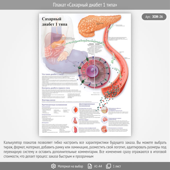 Плакат «Сахарный диабет 1 типа» (ЗОЖ-26, 1 лист) в Магнитогорске купить